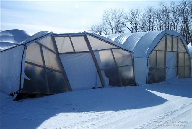 Another disadvantage of high tunnels is that they can be destroyed by high winds, snow, and ice, as they typically do not have the strength of greenhouse structures. Tunnels should be designed to withstand or avoid these stresses.